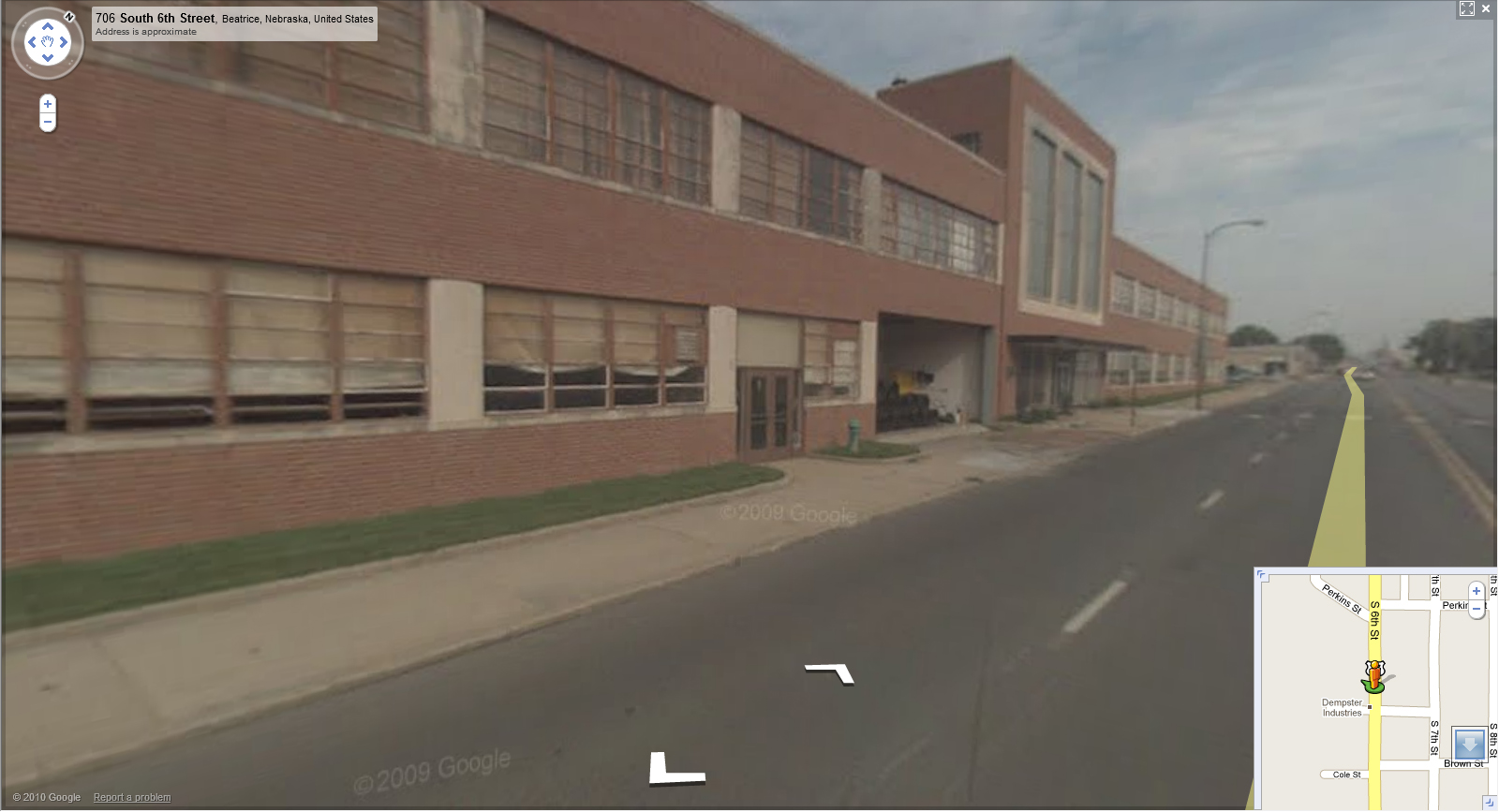 Dempster Mill Factory, 711 S. 6th St, Beatrice, NE--shown in Google Streetview, accessed 11/18/2010