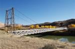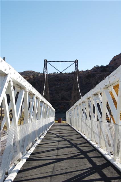 The bridge burned in 2008. The Grand County, Utah, sheriff’s department attributed the April 6th fire to a 6 year old boy. He was playing with matches when he sparked a wildfire near the Colorado River that quickly spread to the bridge. The wooden bridge, which was listed on the National Register of Historic Places, was virtually destroyed. The span was a familiar landmark for those who frequent the Moab area to take advantage of its slick rock mountain bike trails and other recreational pursuits. Photos were taken in 2007.