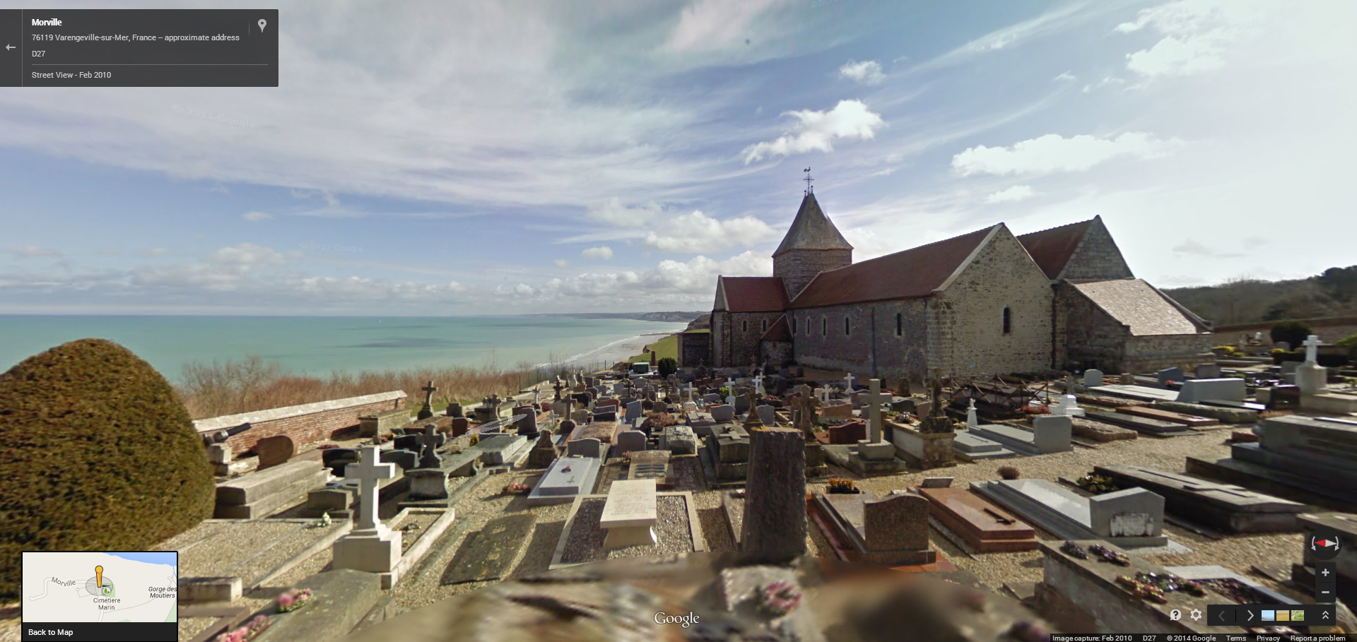 It is surrounded by the marine cemetery, made famous by 2 brothers, Jérôme and Jean Tharaud, who lived in Varengeville and wrote several texts about it in the Chronicles of Figaro in 1948. This was the beginning of the fame of this sanctuary. Some artists compare the texts of the Tharaud brothers to the poem by Paul Valéry, the Marine Cemetery, written in 1920 and singing the charms of the marine cemetery of Sète. Analogies were drawn between the two cemeteries.[i]