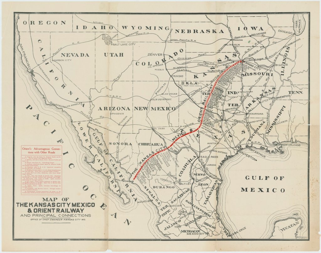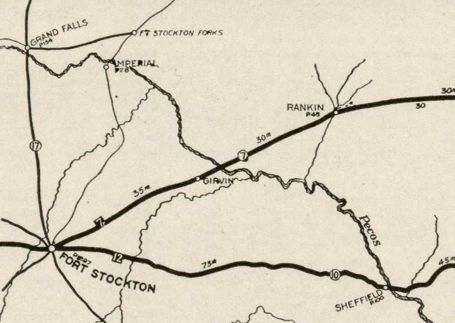 This travel route follows the routes of Henry Connelly, the Kansas City, Mexico & Orient Railway, and the Central Texas Highway through part of the Texas Permian Basin between Rankin and Girvin.
