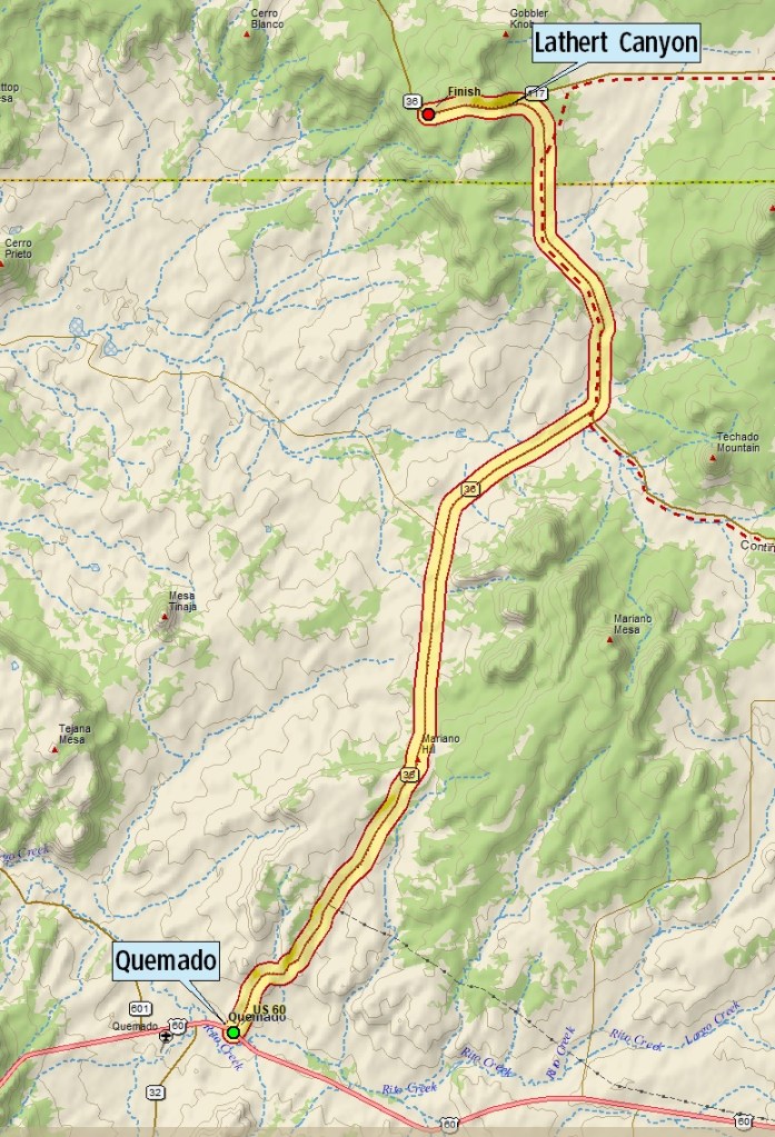 This travel route explores New Mexico Highway 36 northbound from Quemado to Lachert Canyon, New Mexico.