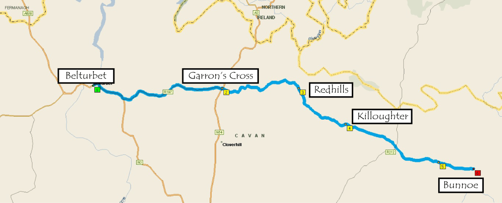 This Irish travel video begins here in Belturbet. It crosses northern County Cavan to the village of Bunnoe.