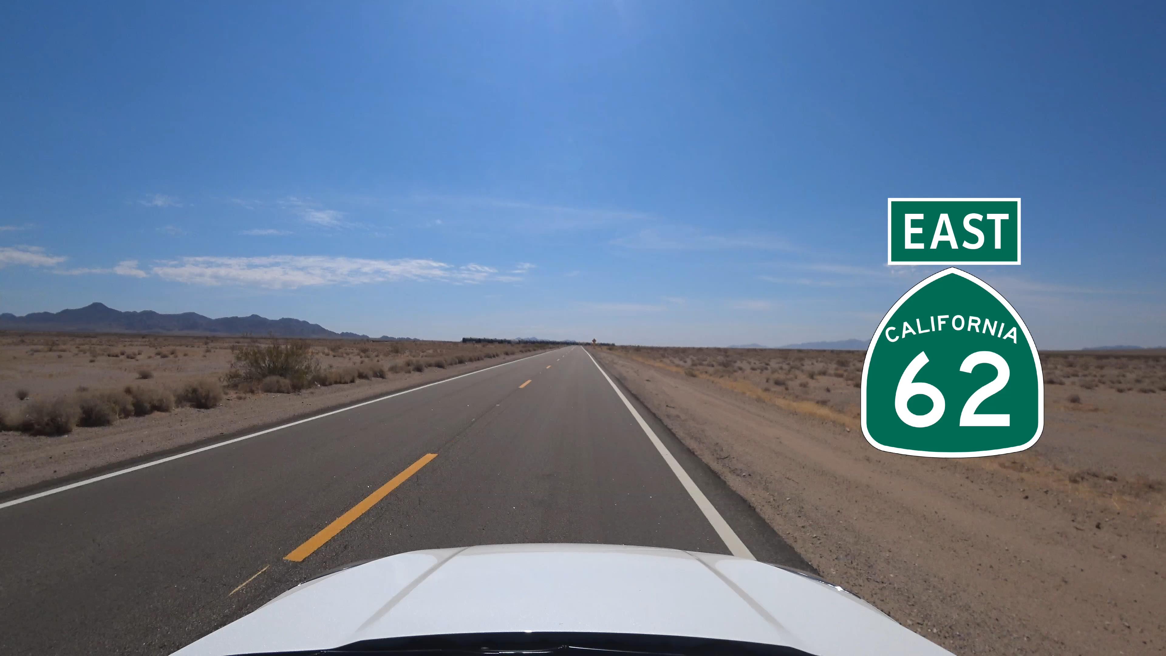 This travel video explores a section of California Highway 62 along the tracks of the Atchison, Topeka & Santa Fe Railway.