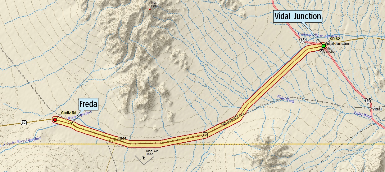 This route has also been referred to as the Aqueduct Road and Parker Dam Road as it follows the aqueduct toward the Colorado River.