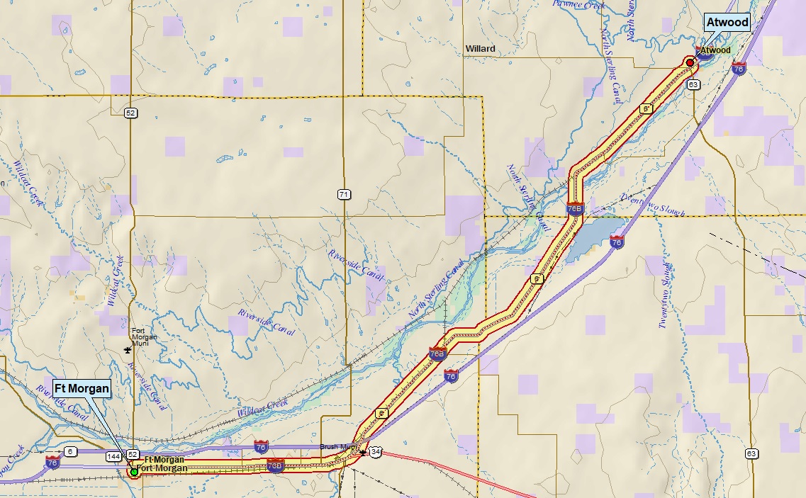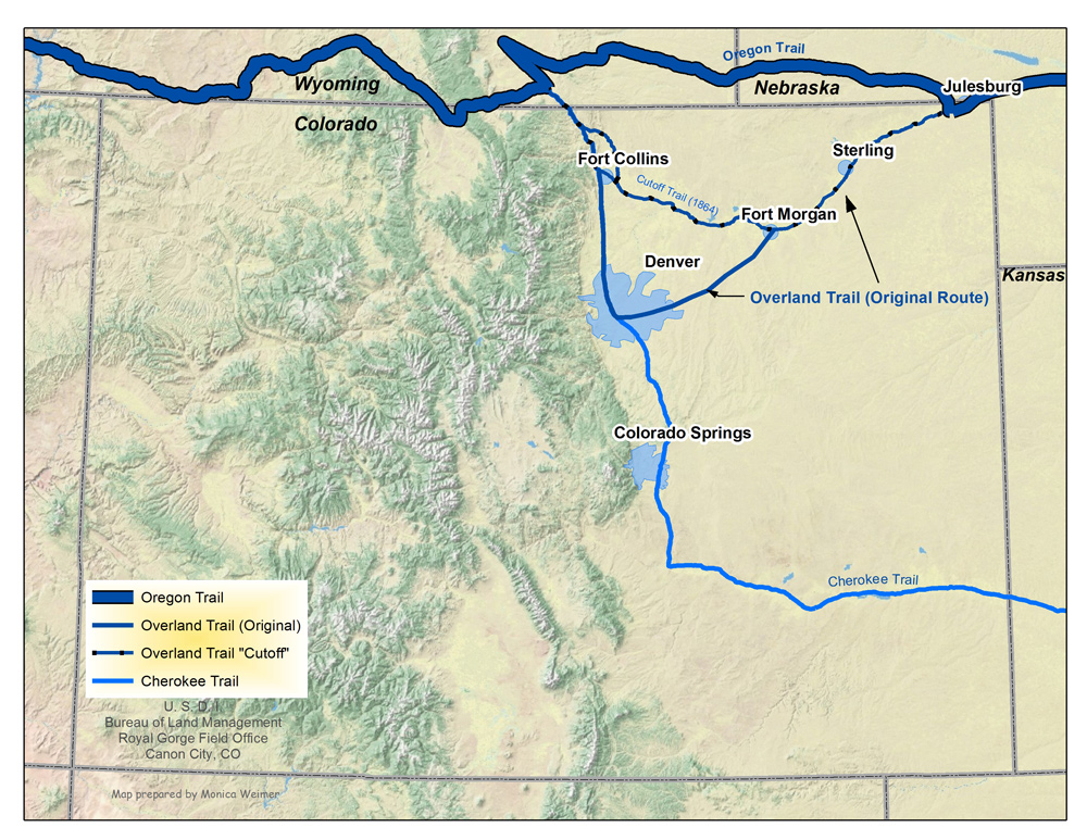 This branch separated from the northern branch between Julesburg, Colorado, and Cheyenne, Wyoming, dipping south to Denver.