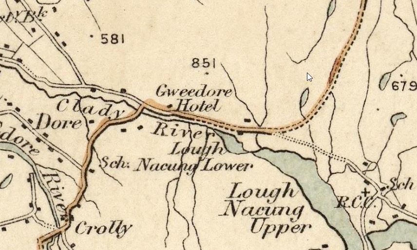 In this part of Ireland, the route is designated as N56 as it travels southwest from Dunfanaghy.