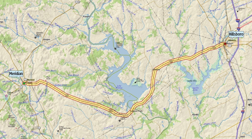 This travel video explores Texas Highway 22, between Meridian in Bosque County and Hillsboro in Hill County.