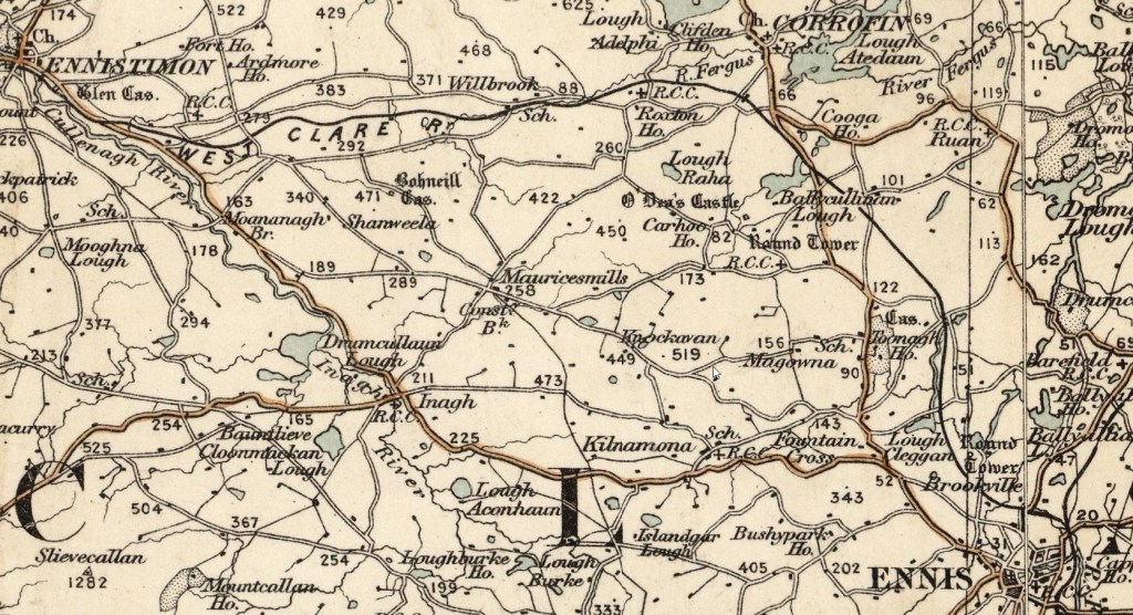 This travel route explores a section of southern County Clare, from Clarecastle, around Ennis, to Corrofin.