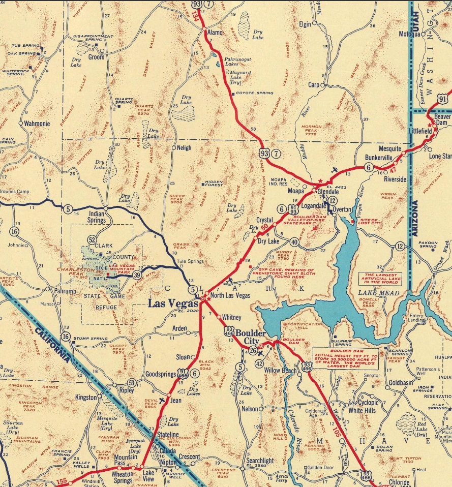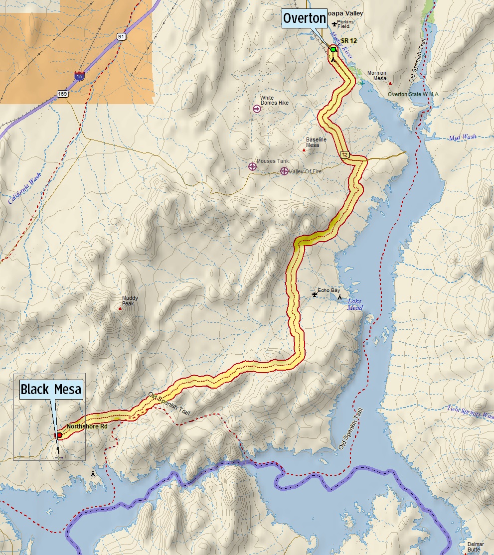 This auto trail roughly follows the Armijo Route of the Old Spanish Trail through the Lake Mead National Recreation Area.