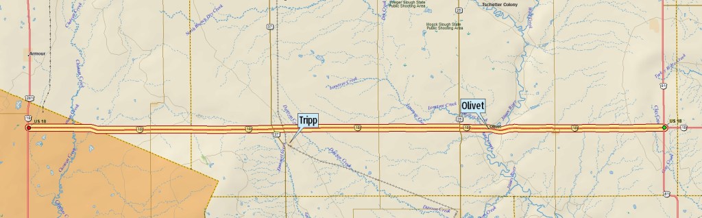 This auto trail explores U.S. Highway 18, crisscrossing sections the tracks of what was once the Chicago, Milwaukee & St. Paul Railroad, in southeastern South Dakota.