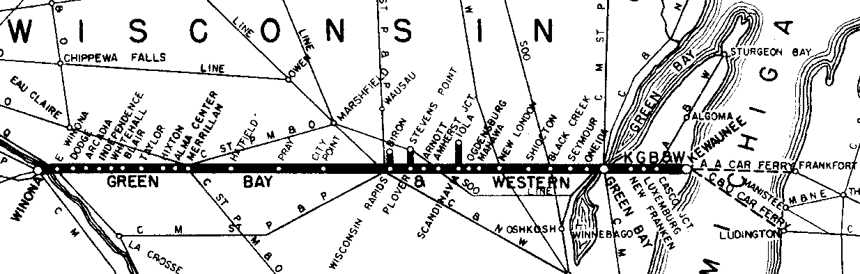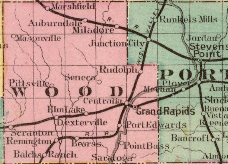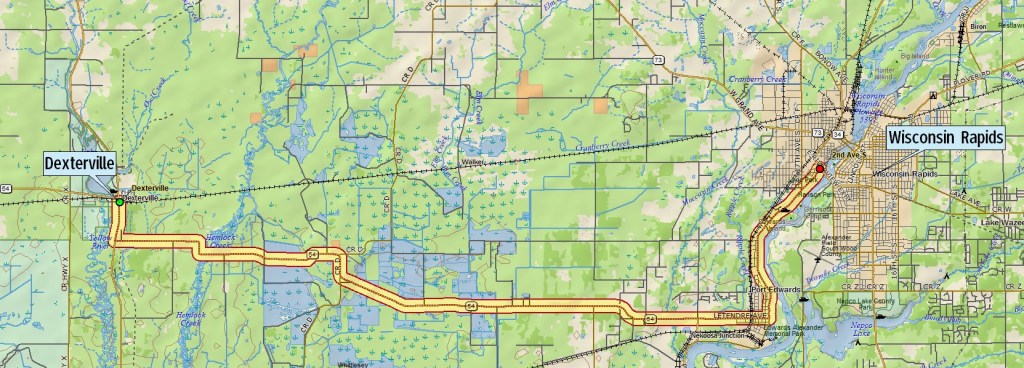 The trail travels roughly parallel to the former tracks of the Green Bay & Western Railway between Dexterville and Wisconsin Rapids.