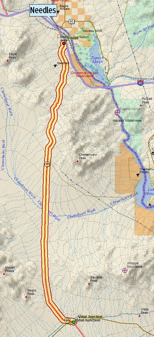 The auto trail follows U.S. Highway 95 north from Vidal Junction to just outside the city of Needles in California.