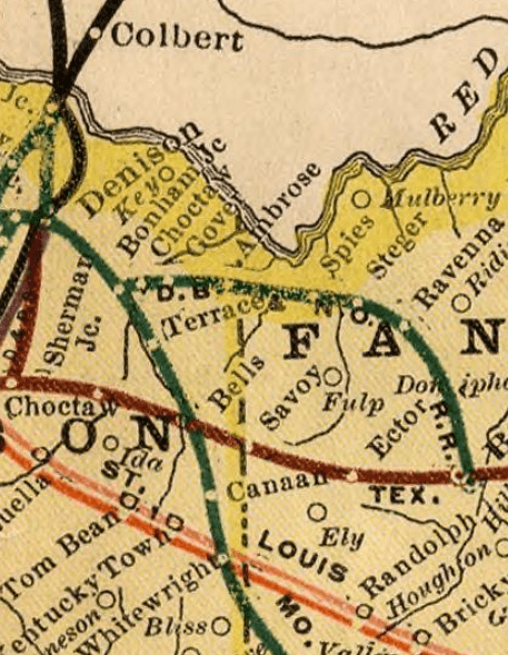 This American auto trail retraces the route of the Denison & Southeastern Railway from Bells to Denison, Texas.