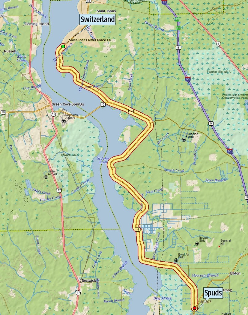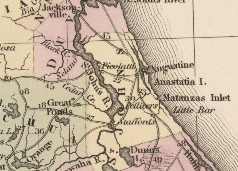 Florida’s State Road 13 hosts the auto trail today along the east bank of the St. Johns River, from just south of Jacksonville through St. John’s County.