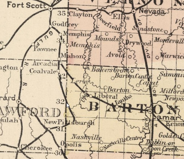 This American auto trail explores western Missouri along the path of the former Kansas City, Fort Scott & Gulf Railroad from Lamar, Missouri, to Mulberry, Kansas.