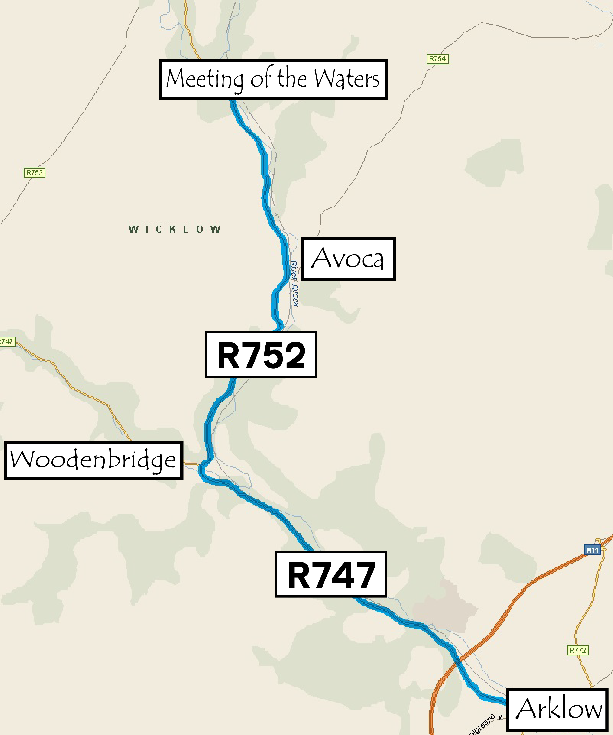 This Irish auto trail explores the Vale of the Avoca, from Arklow to the Meeting of the Waters.