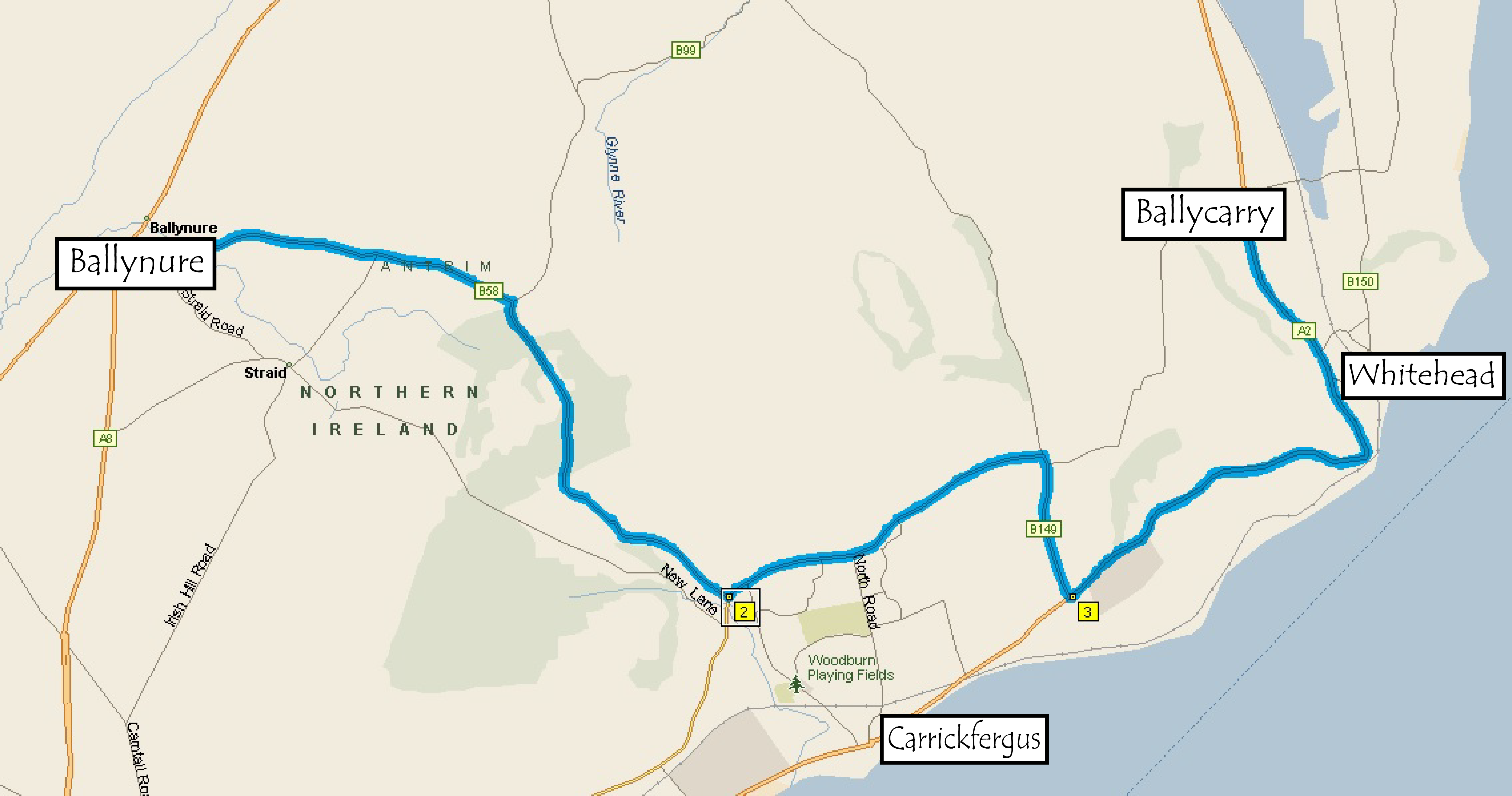 This Irish auto trail explores eastern County Antrim, from Ballynure to the Carrickfergus coast and Islandmagee.
