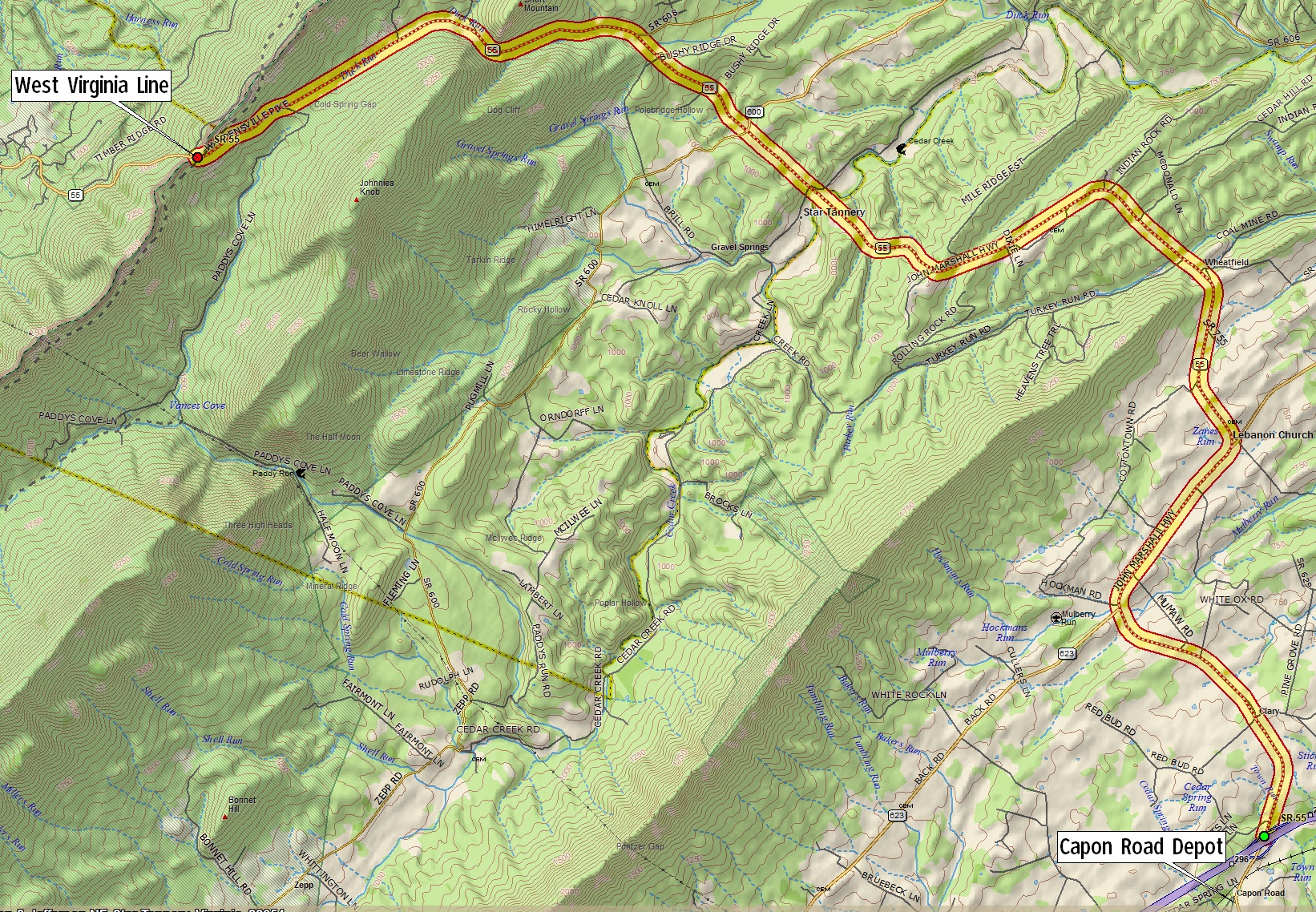 This American auto trail follows the route of the Capon Road, from outside of Strasburg, Virginia, to the West Virginia State Line.