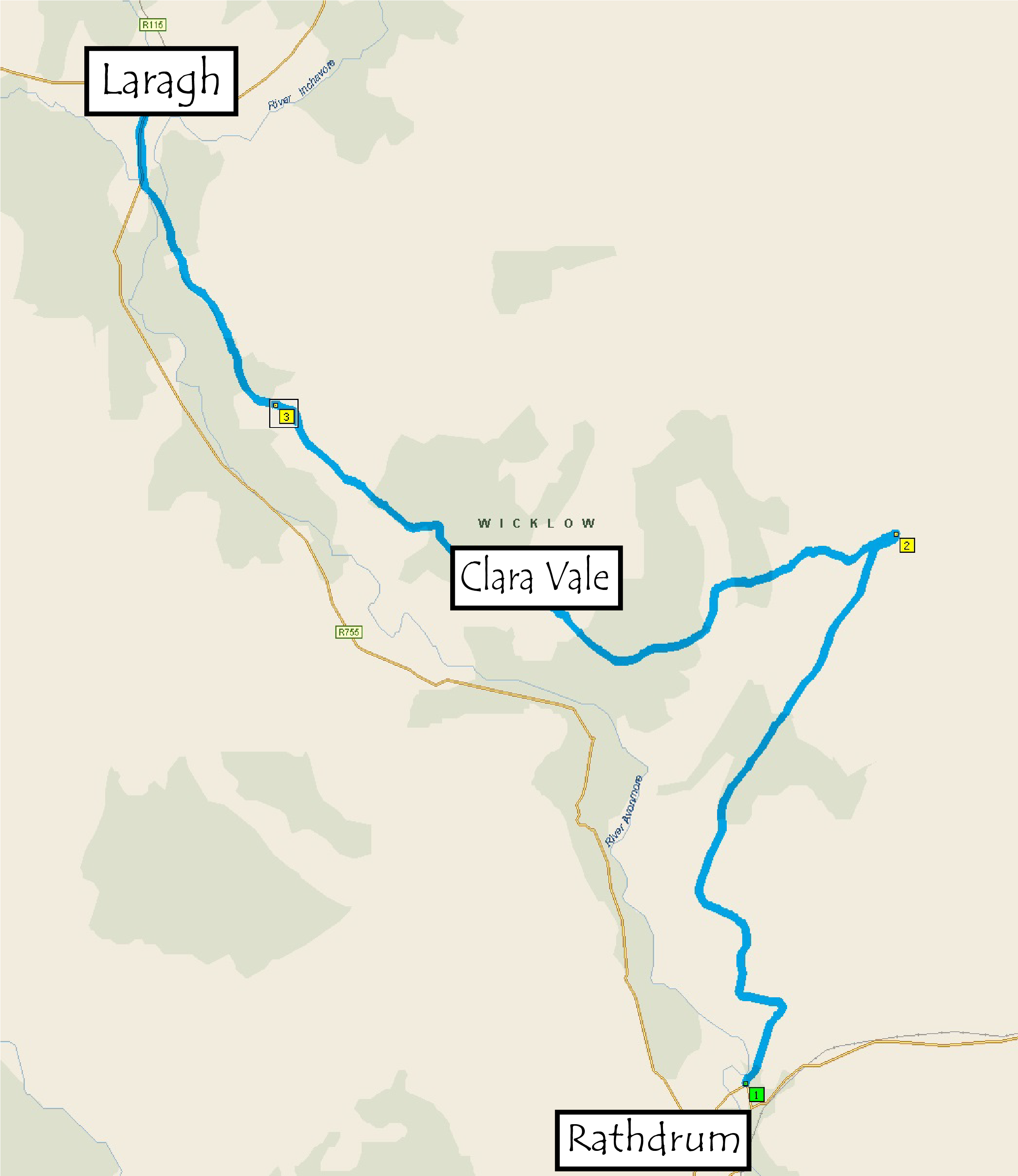 It begins at Rathdrum and ends at the opening in to Glendalough at Laragh.