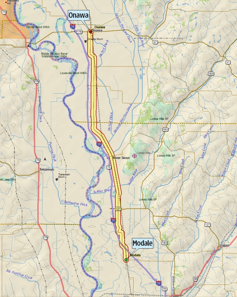 This American auto trail explores a section of the former 1920s King of Trails auto trail, from Modale to Onawa, Iowa.
