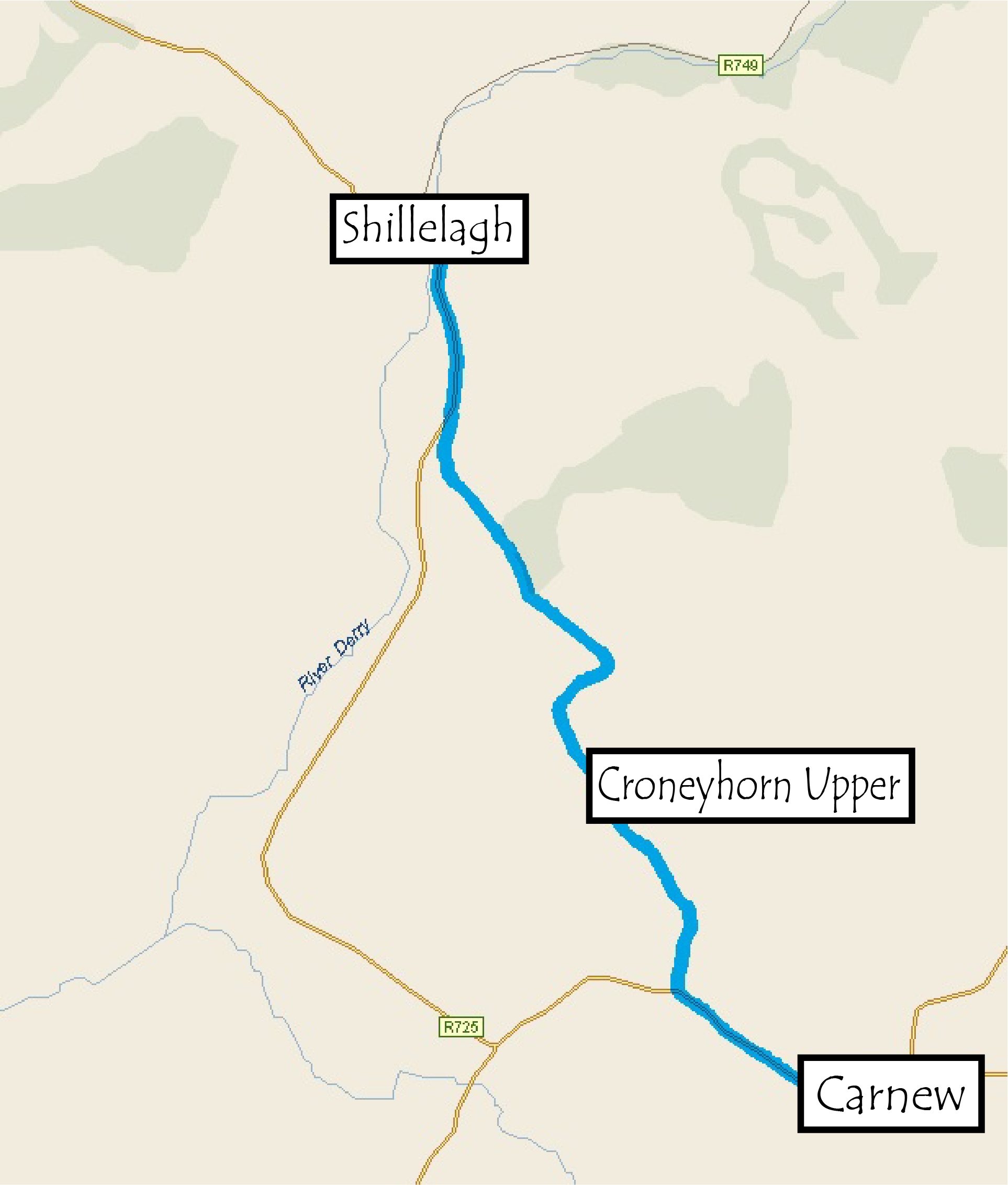 This Irish auto trail explores a short route between Shillelagh and Carnew in County Wicklow, passing through Cronyhorn Upper along the way.