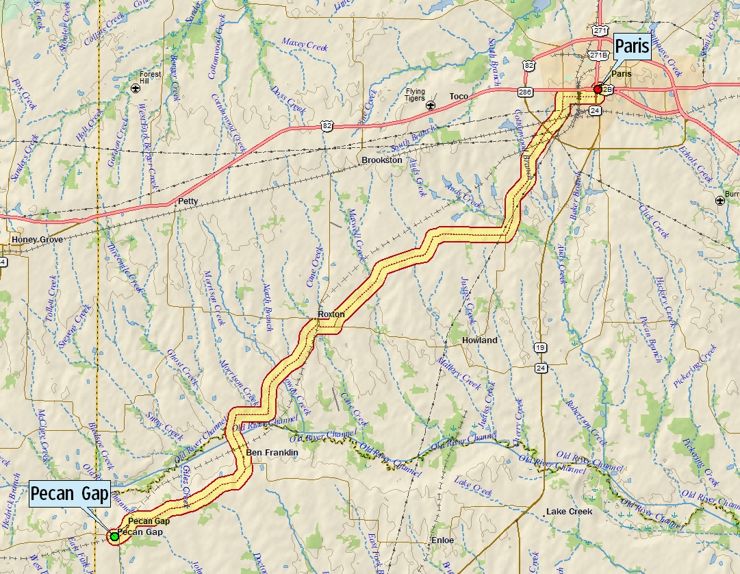 This part explores along the railway’s former route from Pecan Gap to Paris.