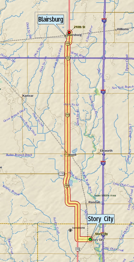 This American auto trail explores U.S. Highway 69 from Story City to Blairsburg, Iowa.