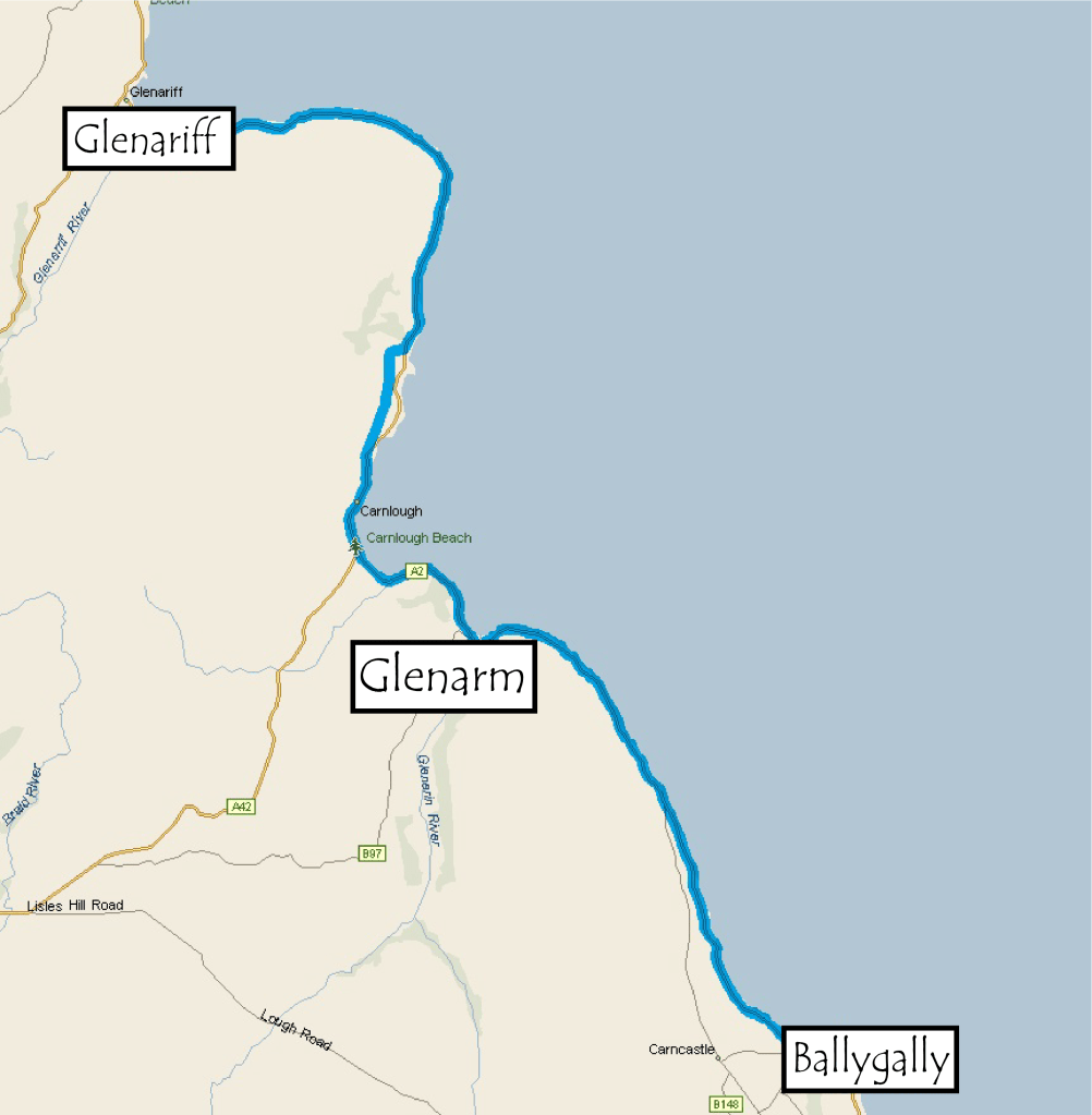 The route passes through Glenarm and Carnlough along on the way.