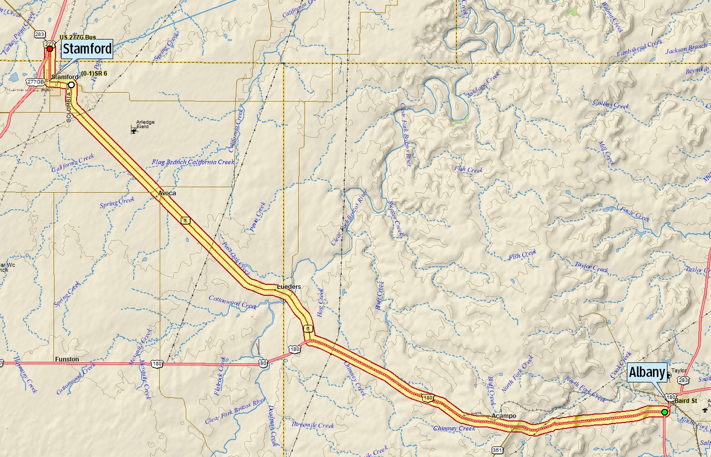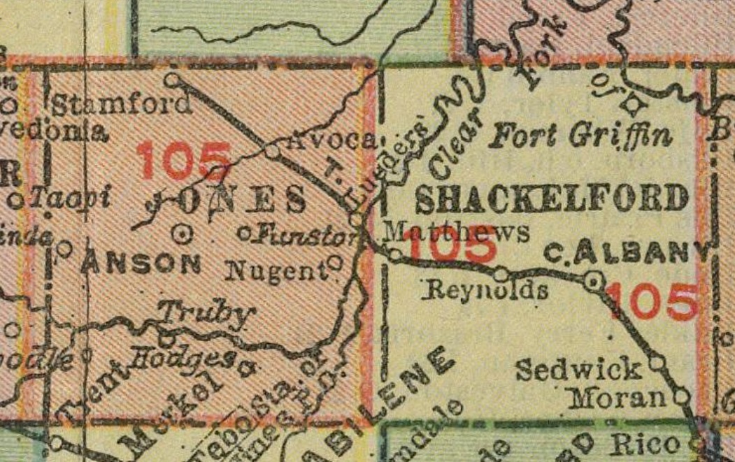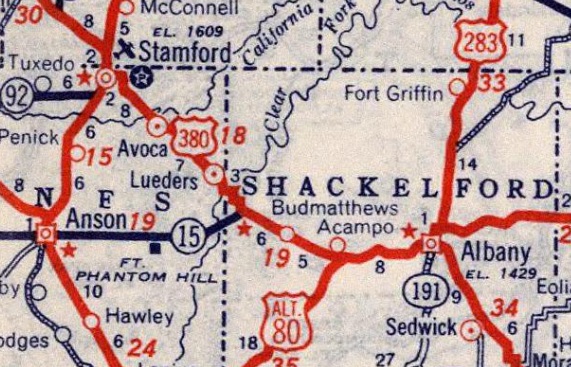 This American auto trail explores the route of the Albany-Bronco Highway, one of the early Texas State Highways, from Albany to Stamford.