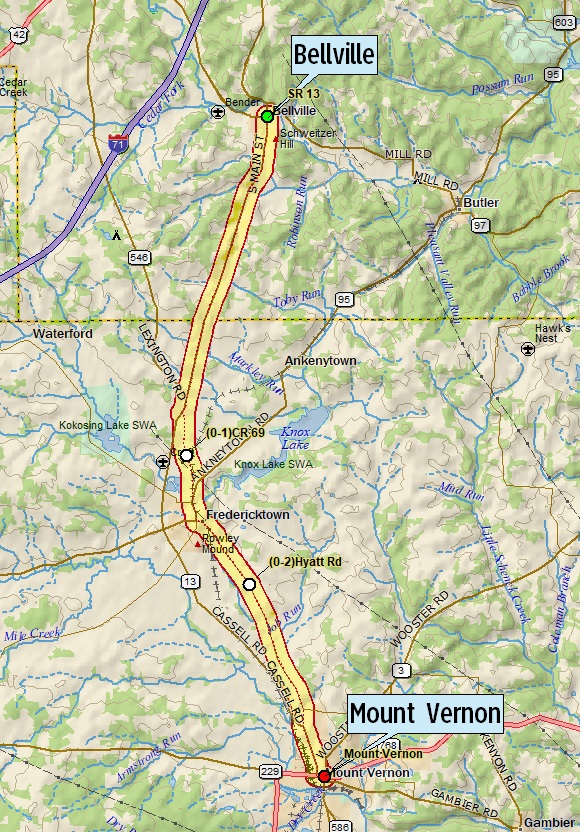 A large portion of the route closely aligns with the former path of the Baltimore & Ohio Railroad.