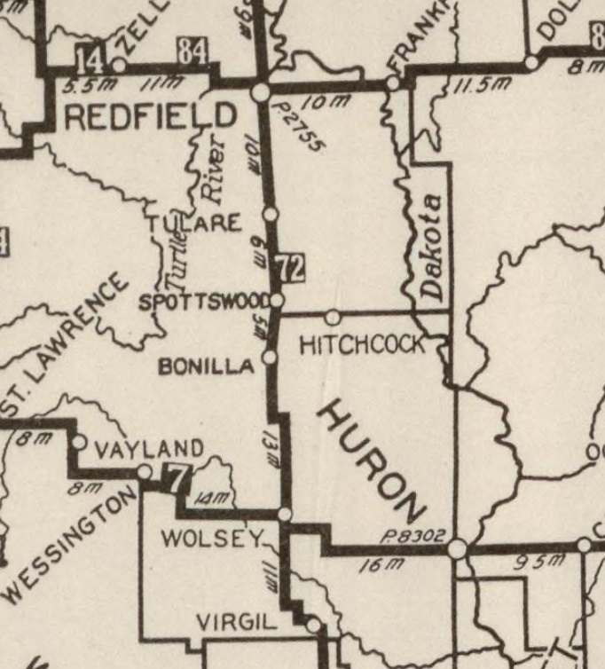 This American auto trail explores the route of the Sunshine Highway auto trail from Wolsey to Redfield, South Dakota.
