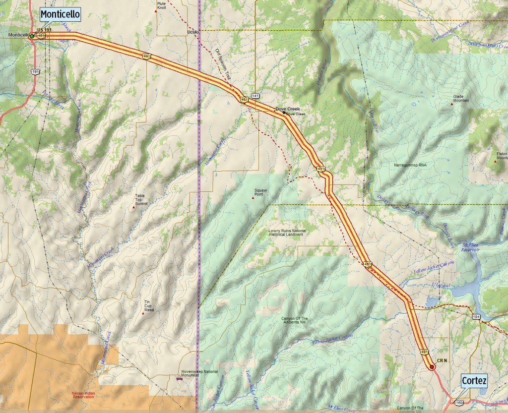 This American auto trail explores the Spanish Trail of the 19th century from Monticello, Utah, to outside Cortez, Colorado.