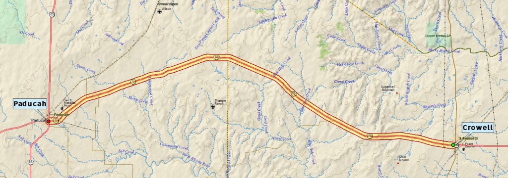 This American auto trail explores a segment of the Fort Worth-Farwell-Frisco Highway auto trail of the 1920s, from Crowell to Paducah, Texas.