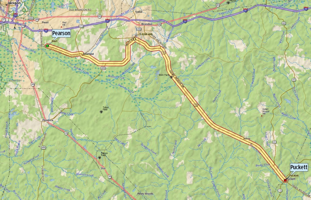 The trail’s route will follow Mississippi Highways 468 and 18 from Pearson to Puckett in Rankin County.