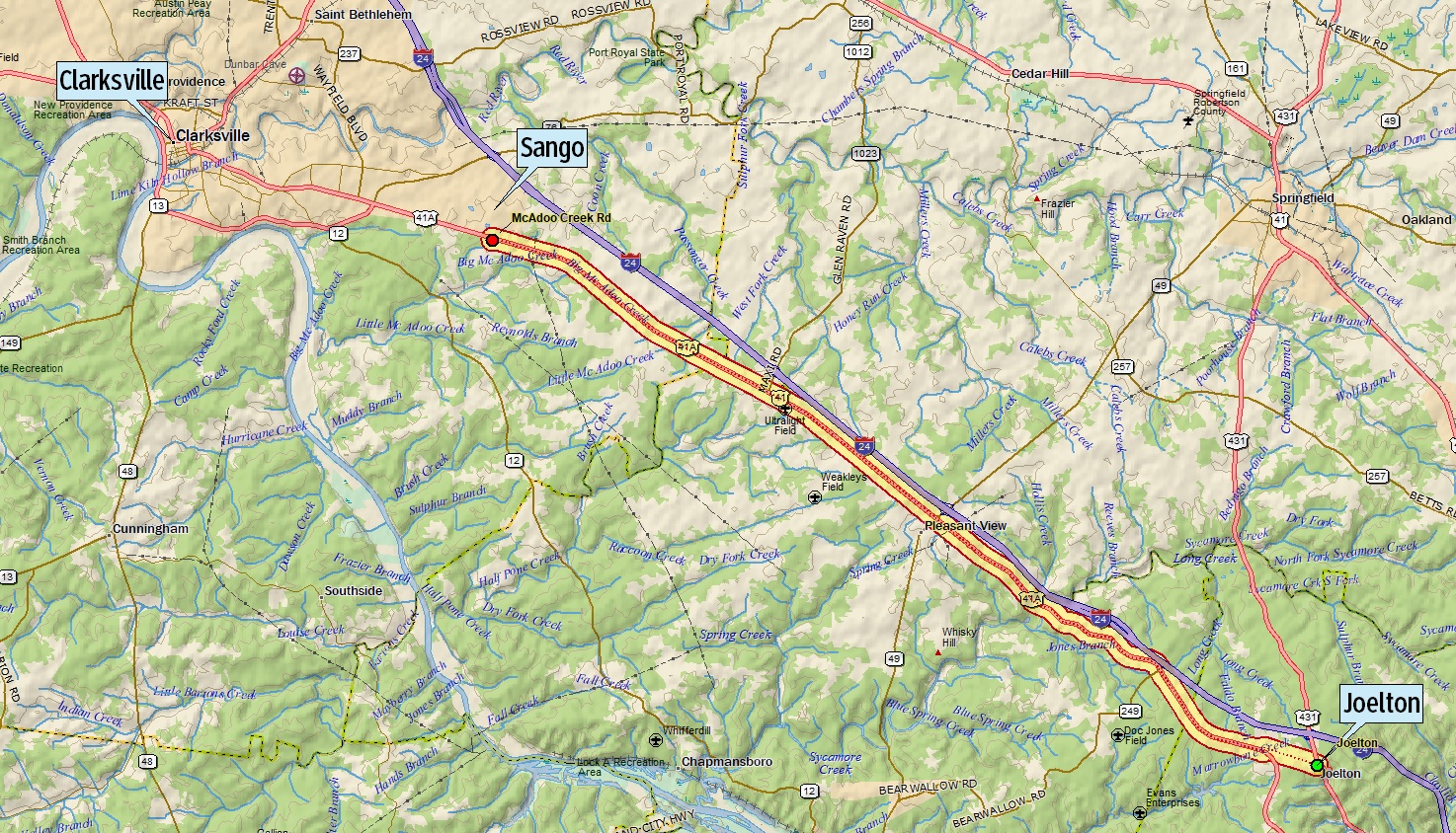 This American auto trail follows U.S. Highway 41A, designated as the Purple Heart Trail, from Joelton to Sango, Tennessee, outside of Clarksville.