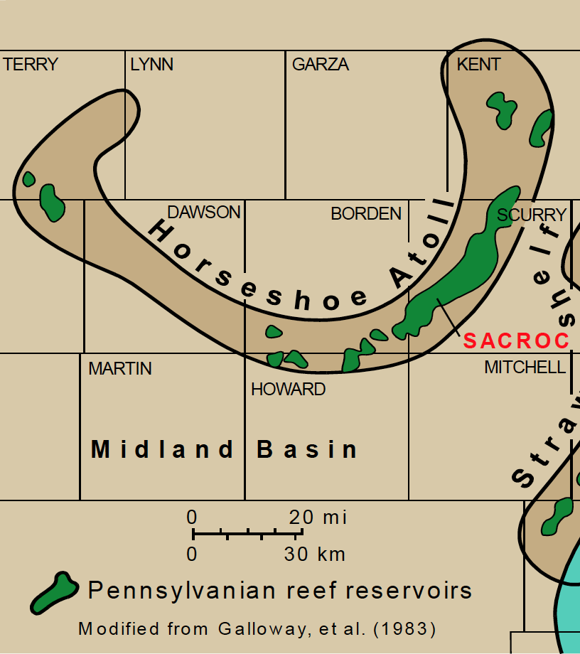 This American auto trail traverses the Canyon Reef formation and Texas’ Horseshoe Atoll in western Scurry County and eastern Borden County.