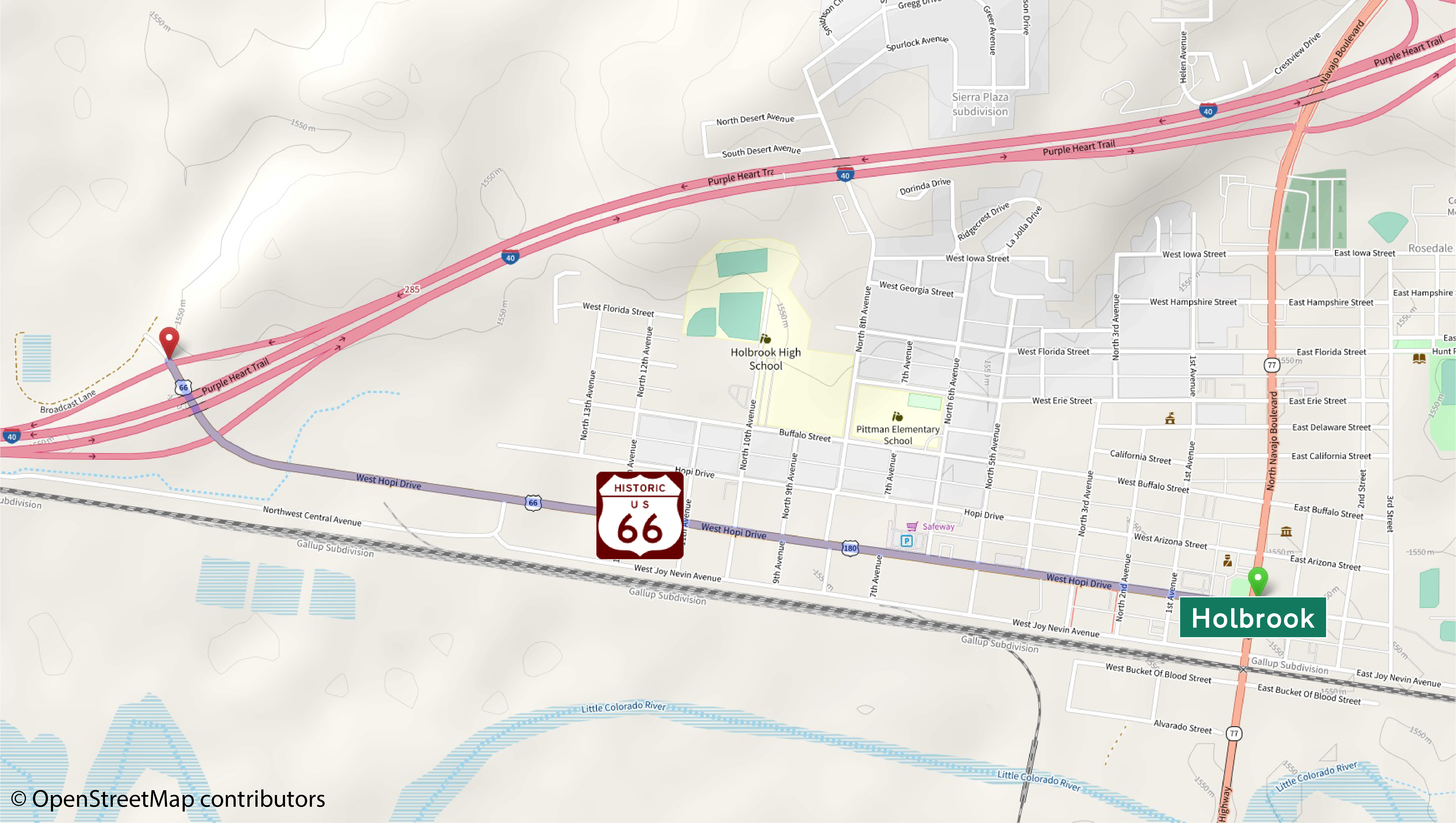 This American auto trail explores three segments of historic Route 66 in Arizona, between Holbrook and Winslow.