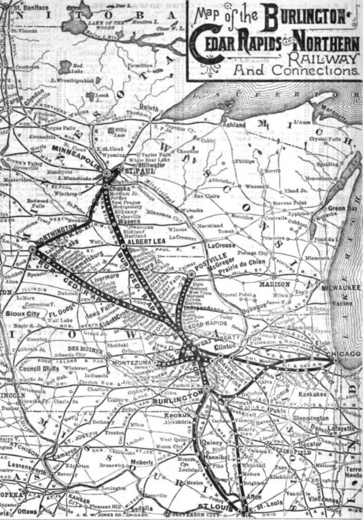 This short trip also accompanies the tracks originally part of the Burlington, Cedar Rapids & Northern Railroad.