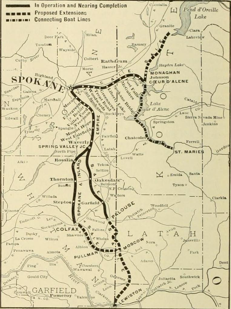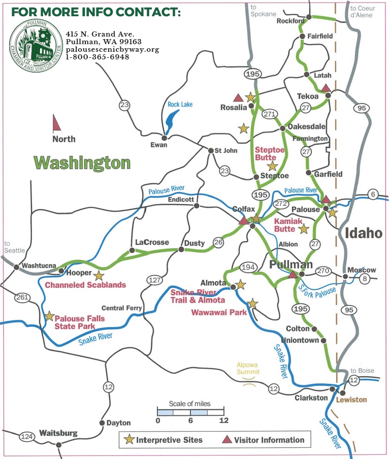The route travels from Steptoe Butte northwest to Tekoa and the Idaho State Line.