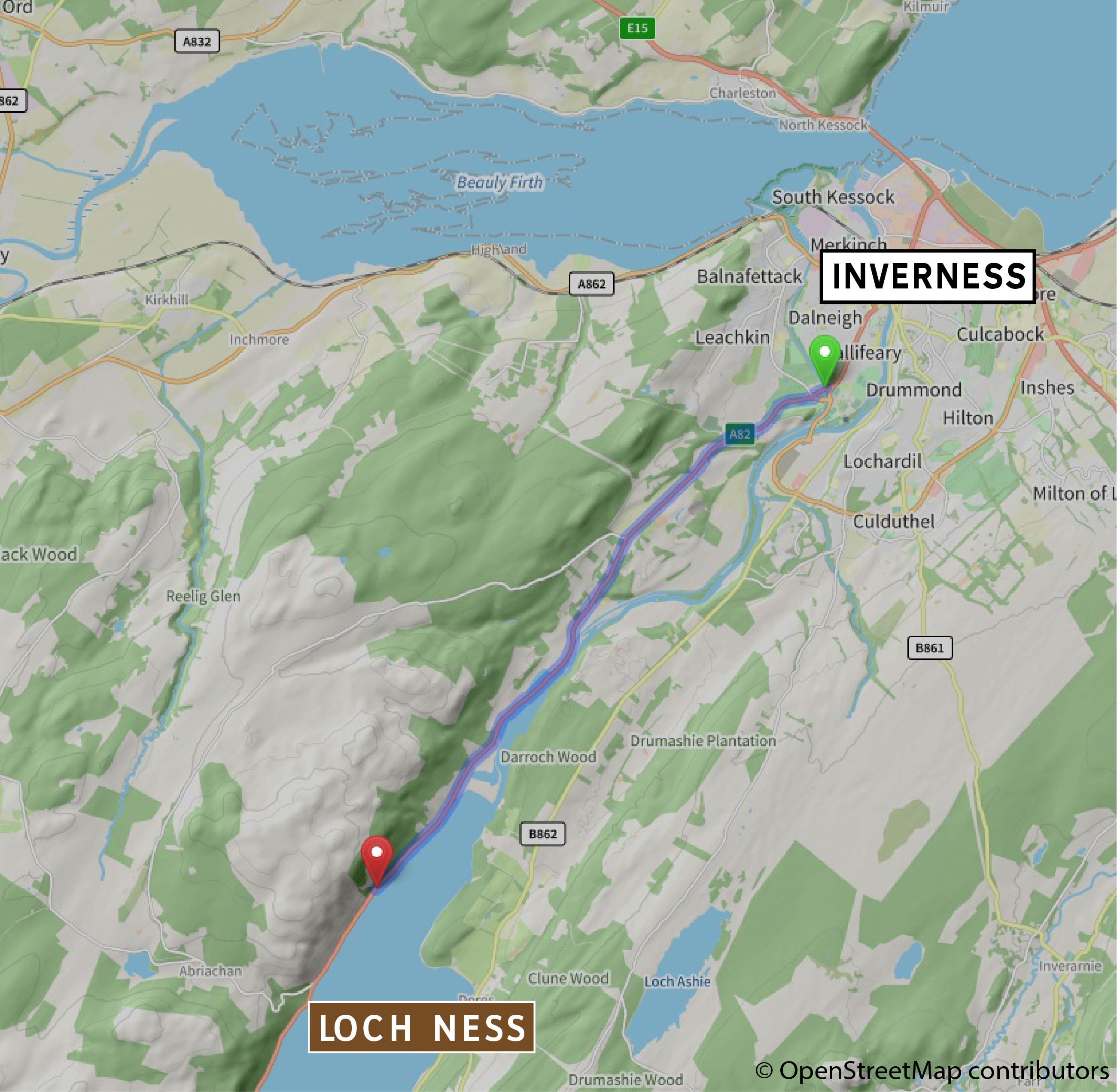 This Scottish auto trail explores a short distance from Inverness southwest on the A82 to Loch Ness.