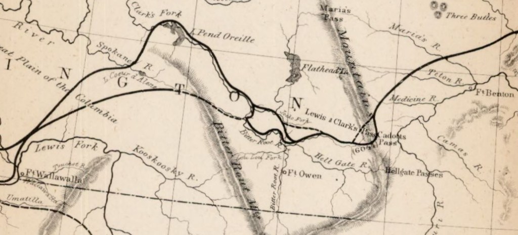 The route includes parts of the Mullan Wagon Road, the Great White Way, and the Northern Pacific Railroad.