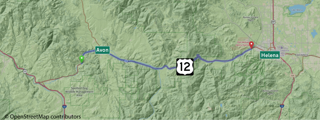 This American auto trail explores U.S. Highway 12, from the rest area west of Avon to Helena, Montana.