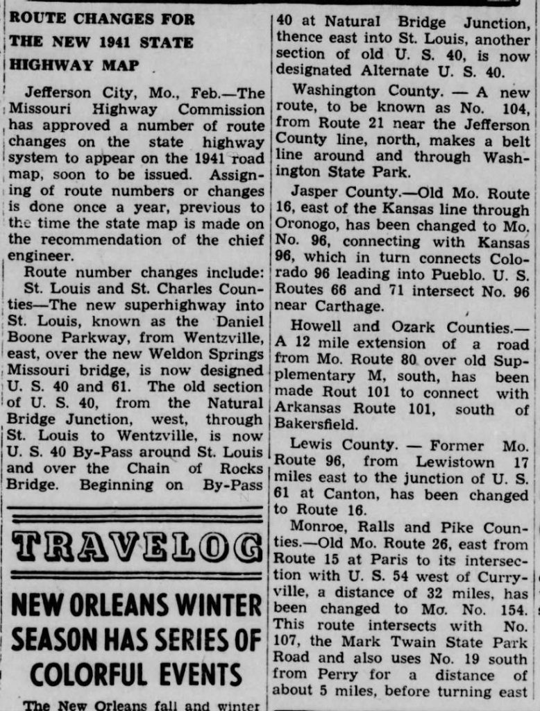 This American auto trail follows U.S. Highway 160 and Missouri Highway 101 south and east, from West Plains to the Arkansas State Line.