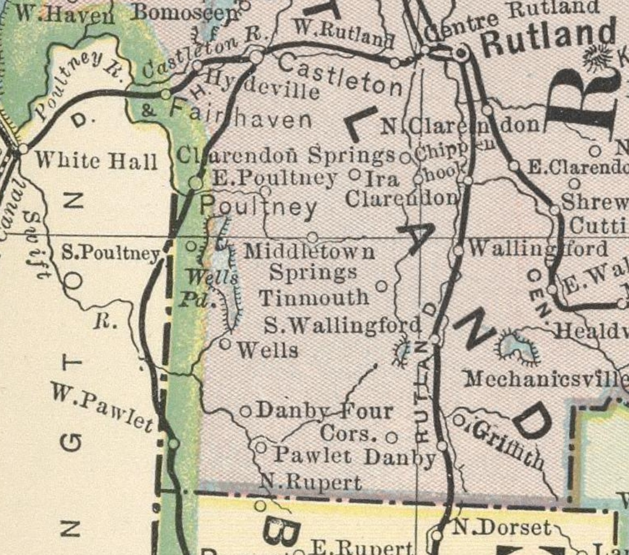 From Middle Granville, this travel route quickly crosses into Vermont, traveling through Poultney to Castleton Corners.