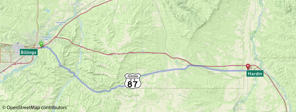 This American auto trail follows the original route of U.S. Highway 87 from Billings to Hardin, Montana.