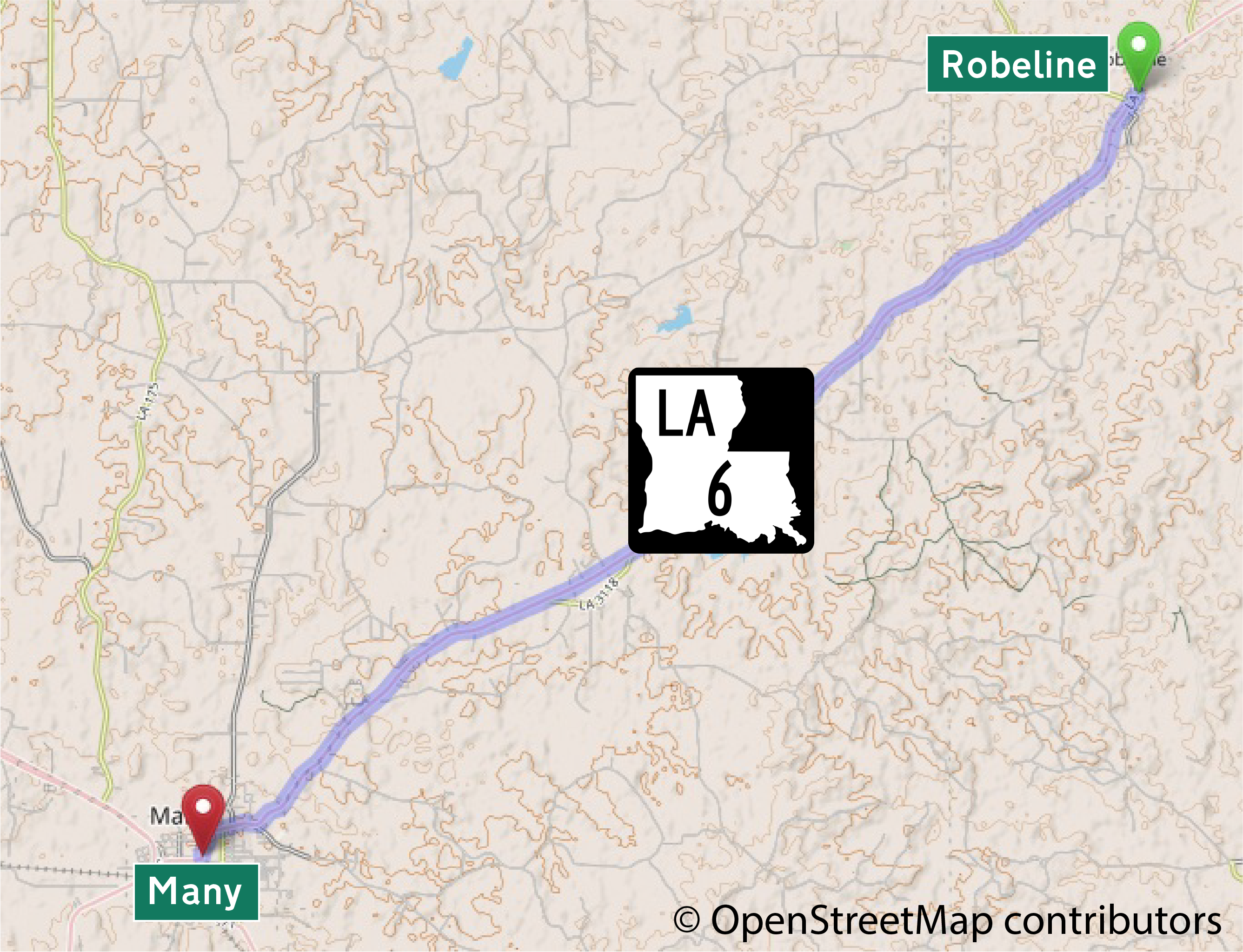 This American auto trail follows the Old San Antonio Road, or El Camino Real de los Tejas, from Robeline to Many, Louisiana.