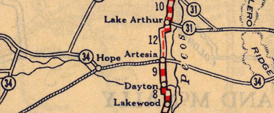The travel route begins in Artesia, New Mexico, and travels west on U.S. Highway 82 through Hope to the Chaves County Line.