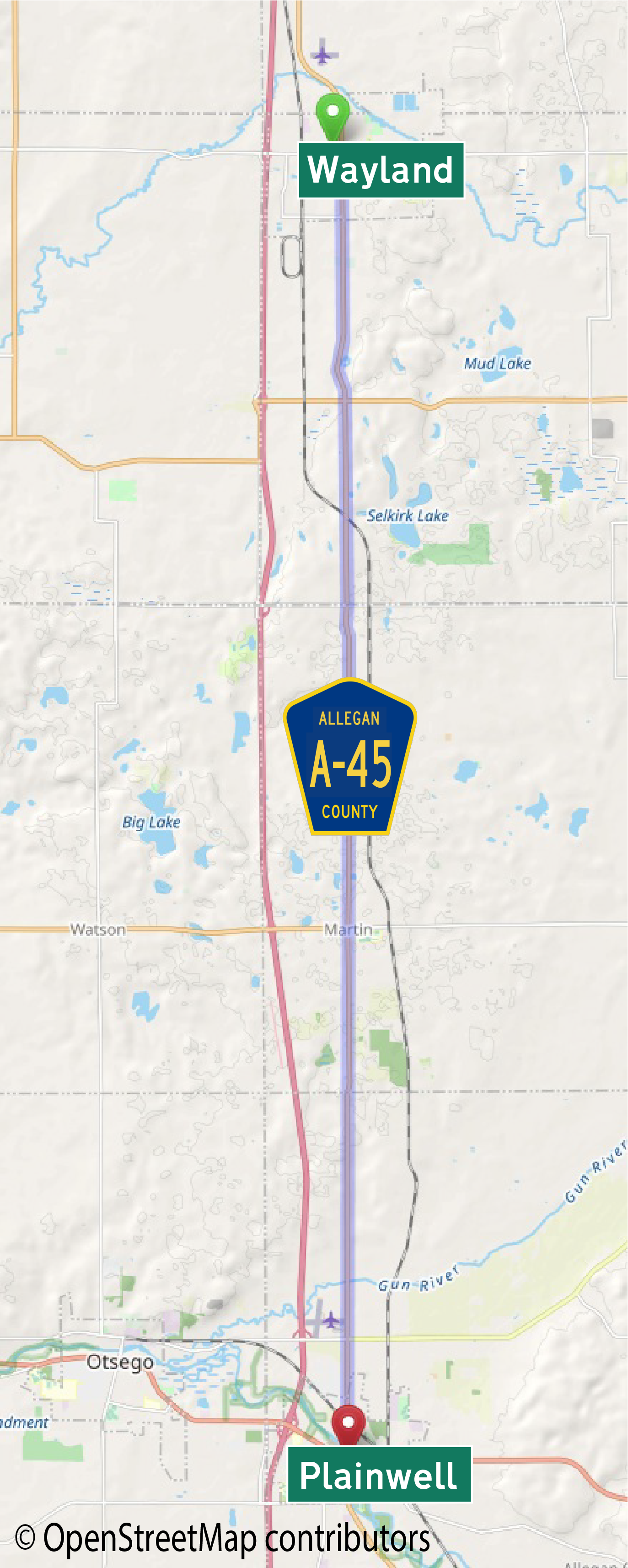 This American auto trail explores a section of the famed 1910s Dixie Highway, from Wayland to Plainwell, Michigan.