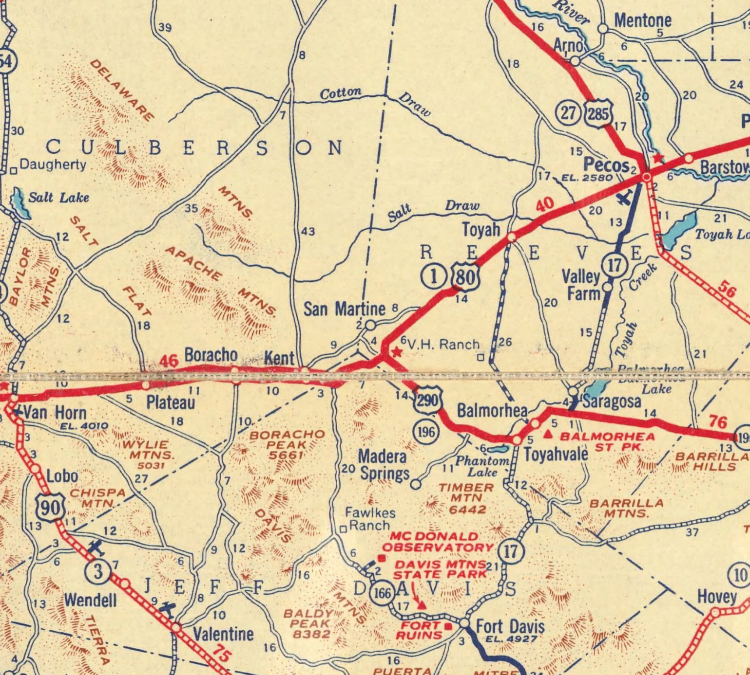 This route travels from Kent east to the intersection of Interstate Highways 10 and 20.