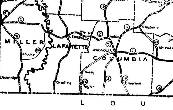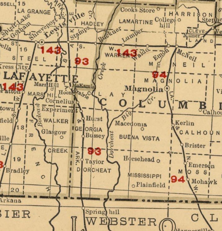 This American auto trail follows U.S. Highway 371 from Springhill, Louisiana, north into Arkansas to Magnolia.